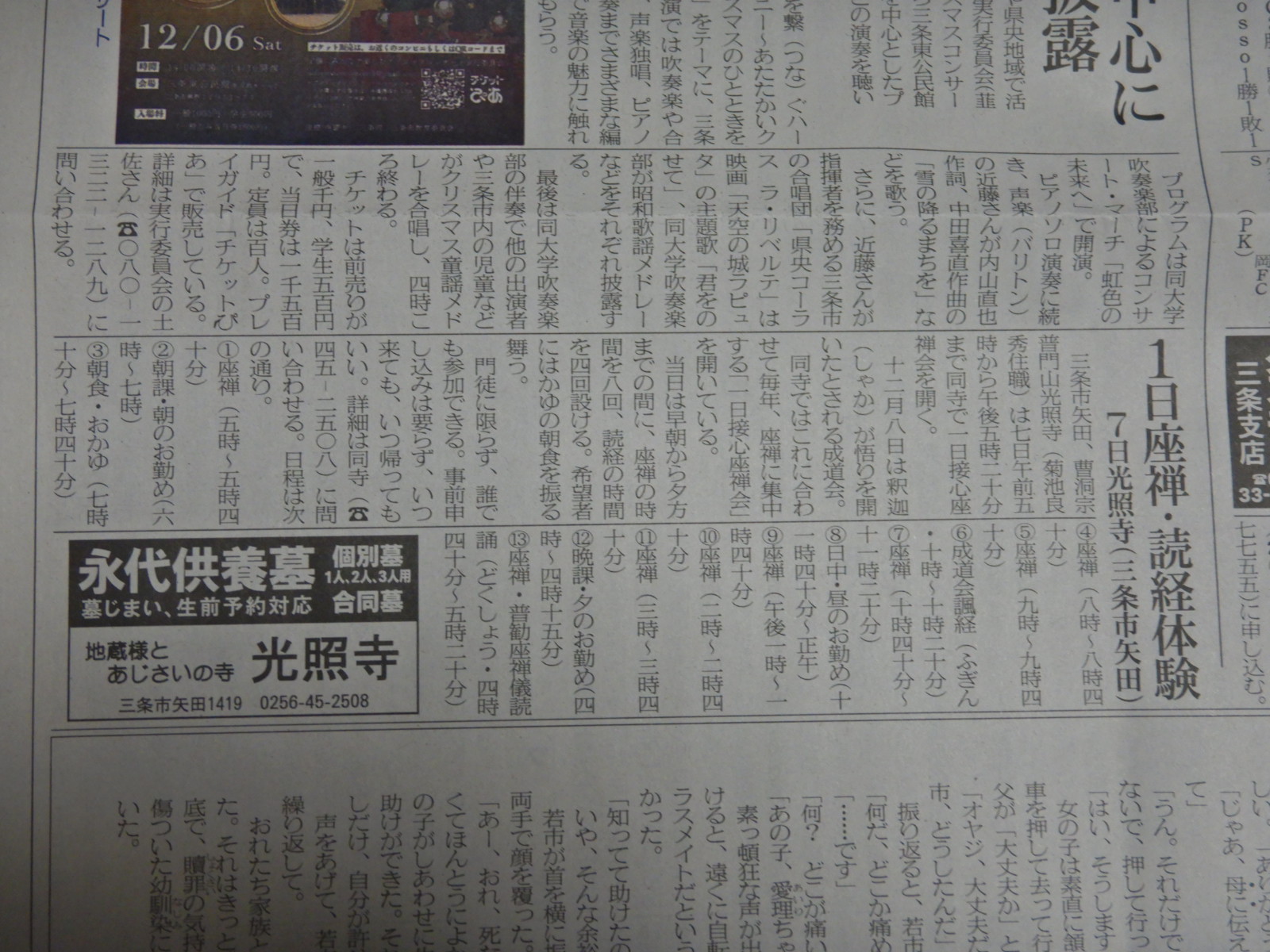12月7日の一日接心坐禅会の紹介記事が本日の三条新聞に出ていました。が、一部違っているところがあるので修正させていただきます。